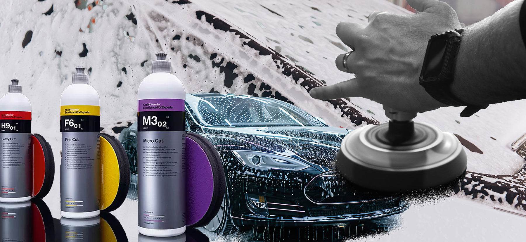 For example, start with a fine cut product like Koch-Chemie F6 and, if that does not shift the marring, move on to a heavy cut like Koch-Chemie H9 or a medium cut like Malco Epic Medium Duty. Then refine back down through the grades - heavy, medium, fine, ultra-fine - to bring back the gloss.