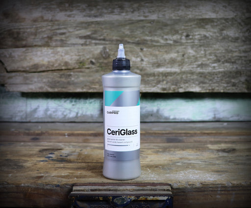 CARPRO's CeriGlass is a special glass polishing system developed by the innovative technique of blending special ceramics (which include Cerium Oxide) together with other nano components and mild abrasives. CeriGlass deep cleans and polishes all glass surfaces with ease. It quickly removes acid rain spots, hard water spots, road film, and stubborn bird stains. It is also capable of removing fine to medium windshield wiper scratches and swirls.