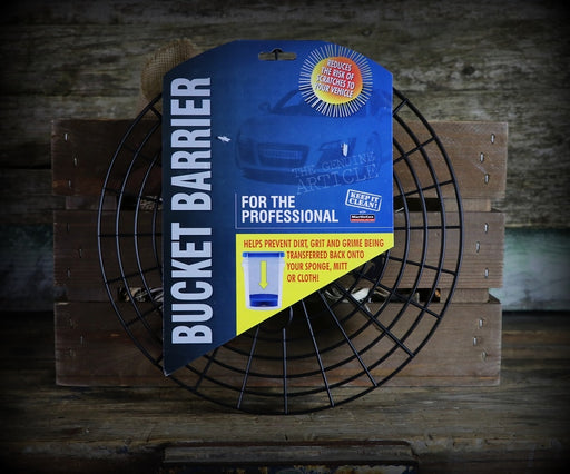To get those particles out of your sponge or mitt, you need the Bucket Barrier. The raised radial surface fits in the bottom of any 5 gallon bucket...