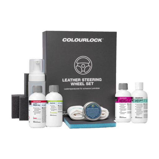 The Leather Steering Wheel Set from Colourlock is specially designed for restoring colour and repairing all worn and scratched black steering wheel...