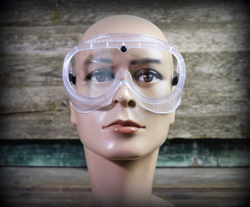 One pair direct vent clear goggles suitable for use as workshop eye protection, one size fits all.