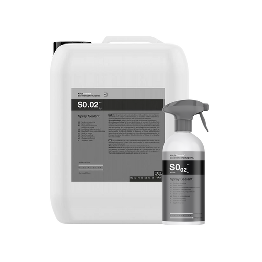 Koch-Chemie Spray Sealant S0.02 comes in a 500ml bottle with spray head. It should be applied on freshly cleaned dry paint surfaces to achieve a smooth velvety finish that will bead off water effortlessly with the added benefit of depth and clarity to the paint finish. One or two sprays should be applied per panel, do not allow to dry but just a short evaporation period then the surface should be wiped with a clean microfibre cloth to achieve an amazing finish with the least amount of effort.