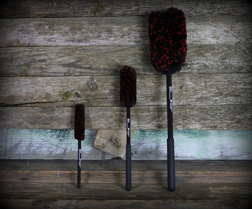 Kit contains: Large brush with 18" handle Medium brush with 12" handle Small brush with 8" handle The Red & Black Wheel Woolies Wheel Brushes...