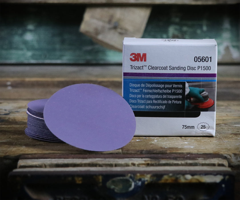 Use 3M Hookit Trizact P1500 Clear Coat Sanding Abrasive Disc for a fast cut and consistent finish every time. Incorporating 3M's Trizact technology, use wet on all automotive paint to remove orange peel texture and to level minor dust nibs. Get a fast cut and consistent finish every time.