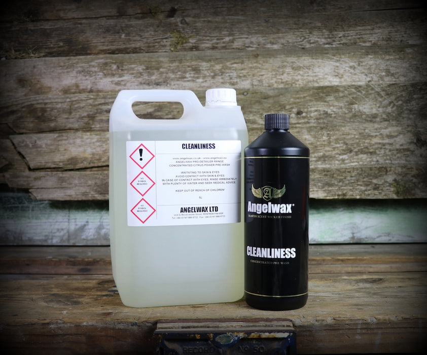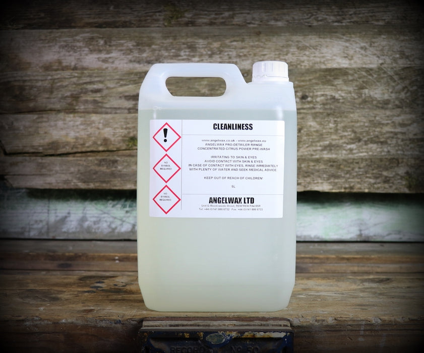 Angelwax Cleanliness is a concentrated orange pre-wash designed to remove bugs, road grime, bird droppings and other contamination from the bodywork of your vehicle. This water-based solution can be used with a foaming lance and pressure washer to blast over your vehicle and lift tougher stains before shampooing. Safe to use on all vehicle surfaces. Angelwax Cleanliness is high foaming, solvent-free, and completely wax and sealant safe.