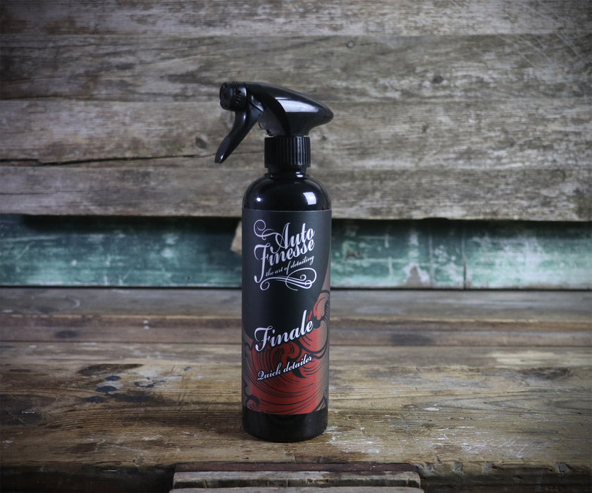Auto Finesse Finale is a carnauba-infused, water-based finishing spray to quickly and easily remove watermarks, fingerprints, product residues and more. Buff surfaces to perfection and clean away blemishes to leave behind a deep shine, wax-like glow. Finale visually boosts previously-applied paintwork protection layers; including hard waxes, sealants and ceramic coatings.
