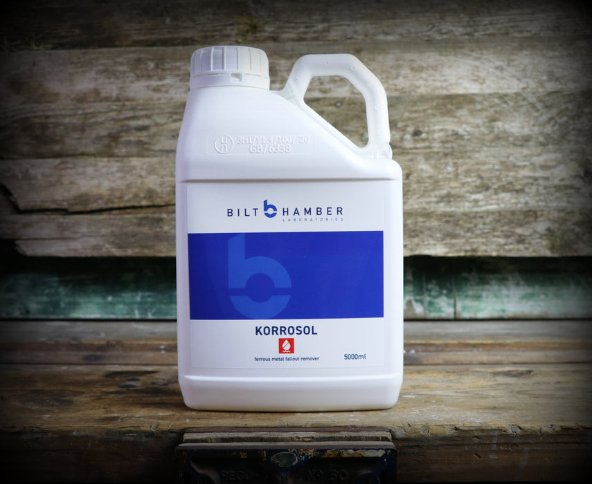Bilt Hamber Korrosol is a balanced pH non-alkaline fallout remover for safe and highly effective removal of embedded metallic particles on vehicle paintwork and wheels.