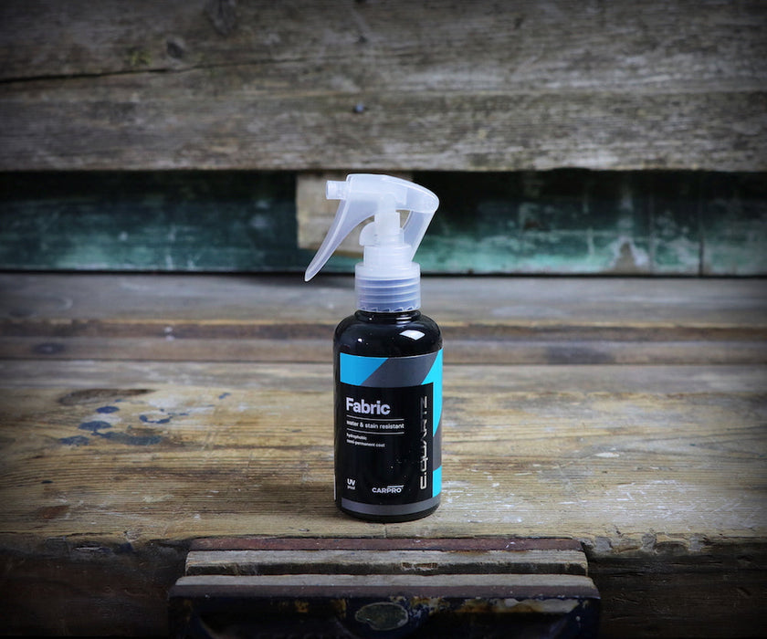 CARPRO CQUARTZ Fabric protection is nano-technology based and is an extremely durable Super HydroPhobic product for fabric protecting against sweat, salt, water, liquids, dirt, bacteria, and stains. The user benefits from a protective layer on car fabrics, meaning if a spill were to happen you'll have plenty of time to mop away spillages with a cloth. CQUARTZ protects the fabric from liquids seeping in and ultimately staining and discolouring your car natural look. Also protects against UV rays which can affect natural fabric colours, particularly on convertible tops.