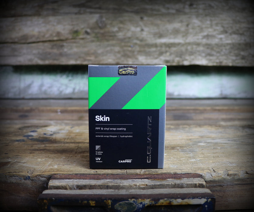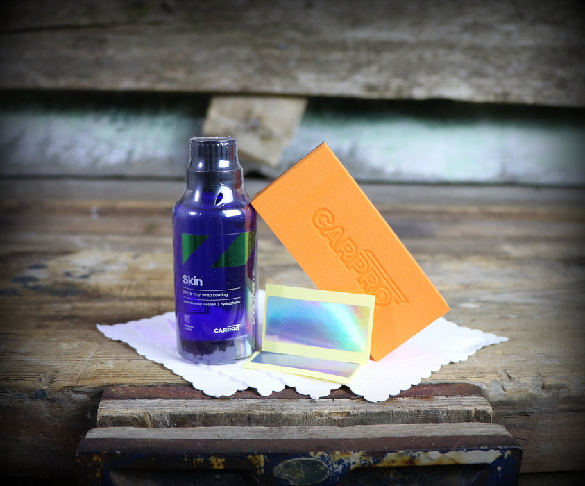 CARPRO CQUARTZ Skin PPF & Vinyl coating (50ml) has been designed to be applied to a variety of paint protection films, clear bra, vinyl film, as well as soft and hard plastic trim. One of the greatest enemies of PPF is UV rays from the sun. CQUARTZ Skin contains heavy UV blockers with both UVA and UVB resistant particles impregnated into the nano structure. Top quality protection is guaranteed for your wrapped and plastic surfaces. CQUARTZ Skin is easily applied to prepared surfaces and can be used on matte and satin wraps when used as directed. Easy to use in all climates if you've been trained in coating application; simply wipe on and wipe off.