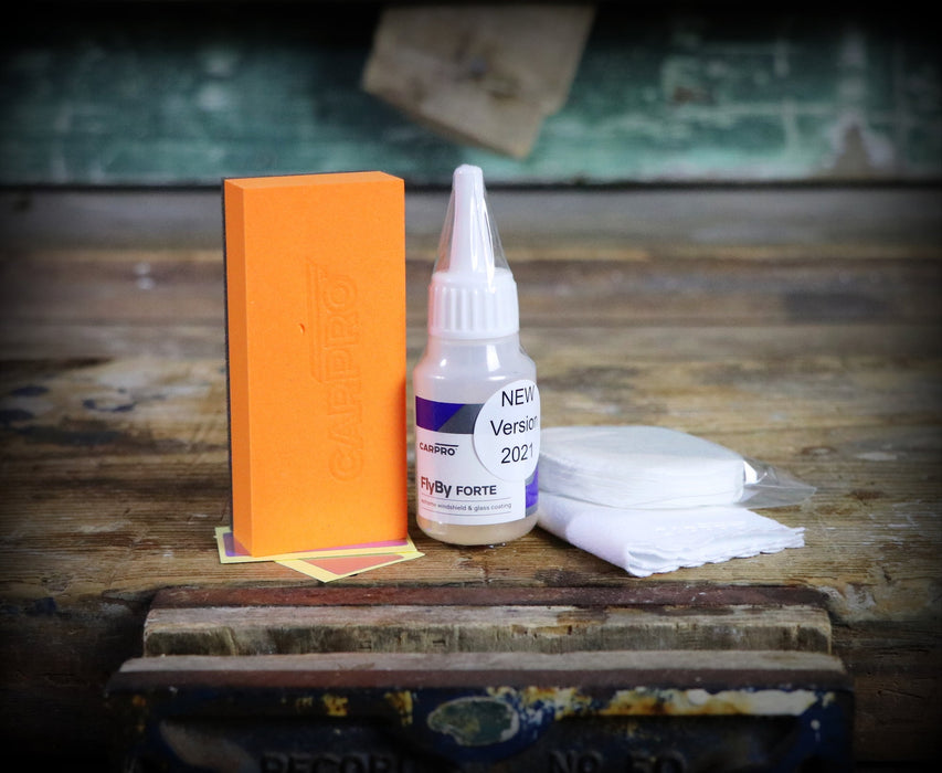 CARPRO FlyBy Forte is the ultimate windscreen and glass coating with an inorganic nano-tech coating that has been specifically designed for extreme semi-permanent durability and long-term resistance of abrasion and chemicals. The brand new technologically advanced windshield coating from CARPRO has been inspired by the latest and most advanced mobile phone anti-scratch protection. FlyBy Forte has been tested to over 40,000 real time wiper cleaning cycles. It is UV stable, highly chemical resistant, and provides resistance to minor chips and scratches ensuring your safety and better vision in bad weather.