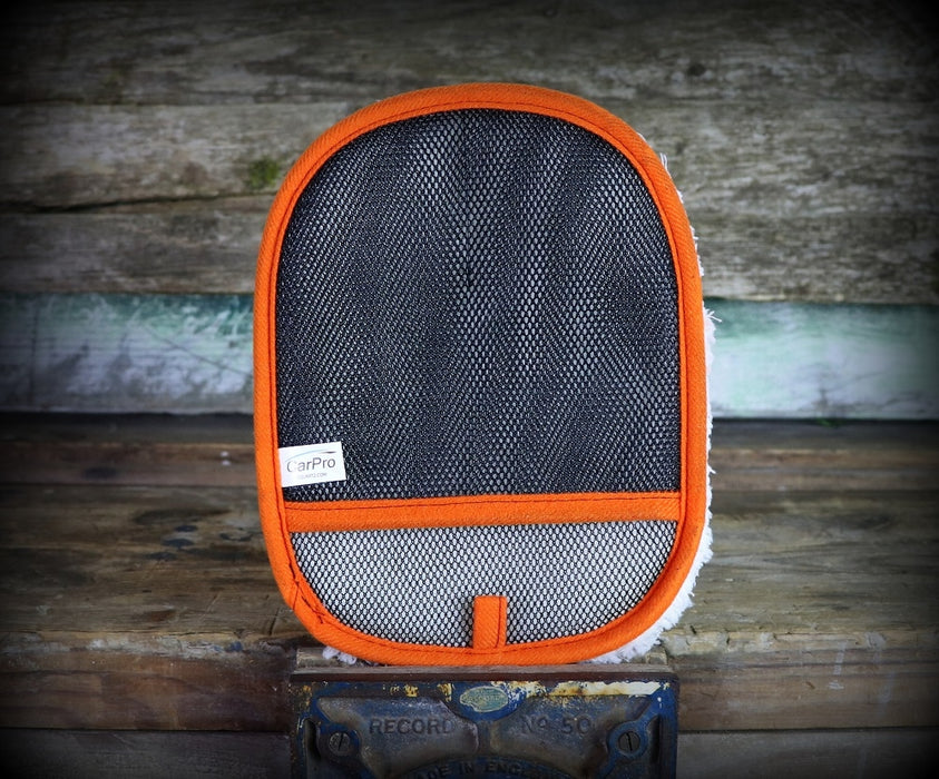 The CARPRO Hand Wash Mitt is designed with a synthetic twin microfiber & polyester blend to trap dirt and debris, gently lifting them away from the surface to ensure a safe swirl free cleaning. The single sided mesh design reduces hand fatigue while the all white microfibers ensures you don't transfer dirt back to the paintwork.