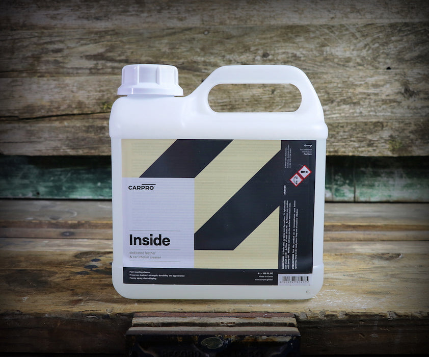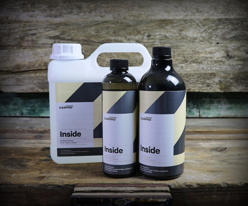 CARPRO Inside is a fantastic new cleaning solution for vehicle interiors of many shapes and sizes! Inside is specially formulated to safely clean vinyl, plastic, finished leather and a variety of interior surfaces - without leaving any smear marks. Utilising a high foaming mix of proprietary surfactants and gentle detergents, CARPRO Interior is able to easily remove dirt, sweat, oils, and all manner of soling on interior surfaces.