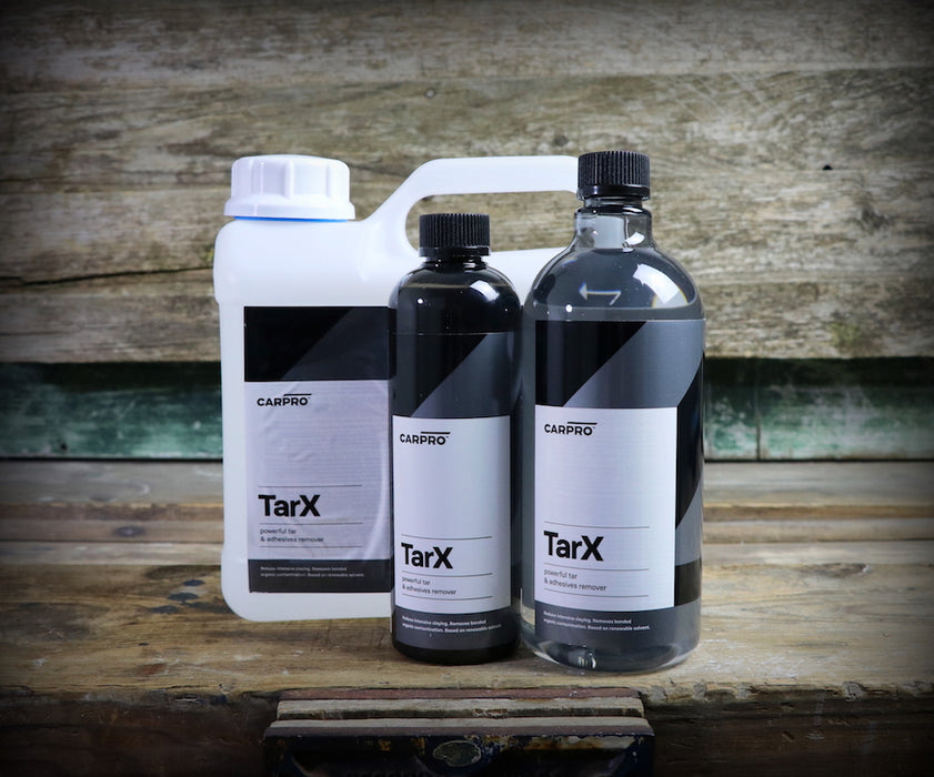 Reduce intensive claying on your car, with Tar X pre wash tar & adhesive remover from CARPRO. It's fast reacting formula boasts a lengthy dwell time as well, CARPRO Tar X is made with natural ingredients & based on renewable solvents. Suitable for all purpose degreasing, tar and asphalt removal, insect, tire mark, adhesives spot removal, traffic film & removal of all other bonded organic contamination.