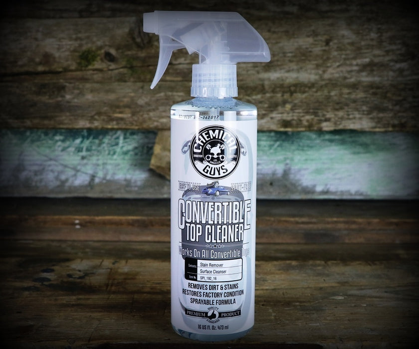Chemical Guys Convertible Top Cleaner removes dirt and stains from any convertible soft top. This versatile formula breaks down dirt and stains on convertible tops and tonneau covers, while being able to safely remove dirt, grease, road grime, tree sap, tar, water spots, bird droppings and much more. Chemical Guys Convertible Top Cleaner is pH neutral and biodegradable which means it is environmentally friendly.