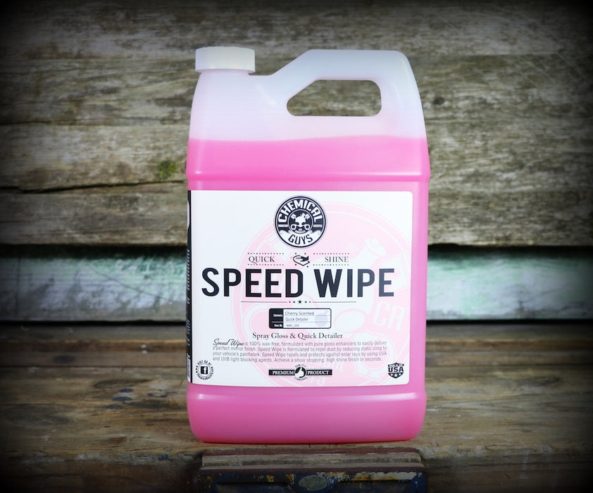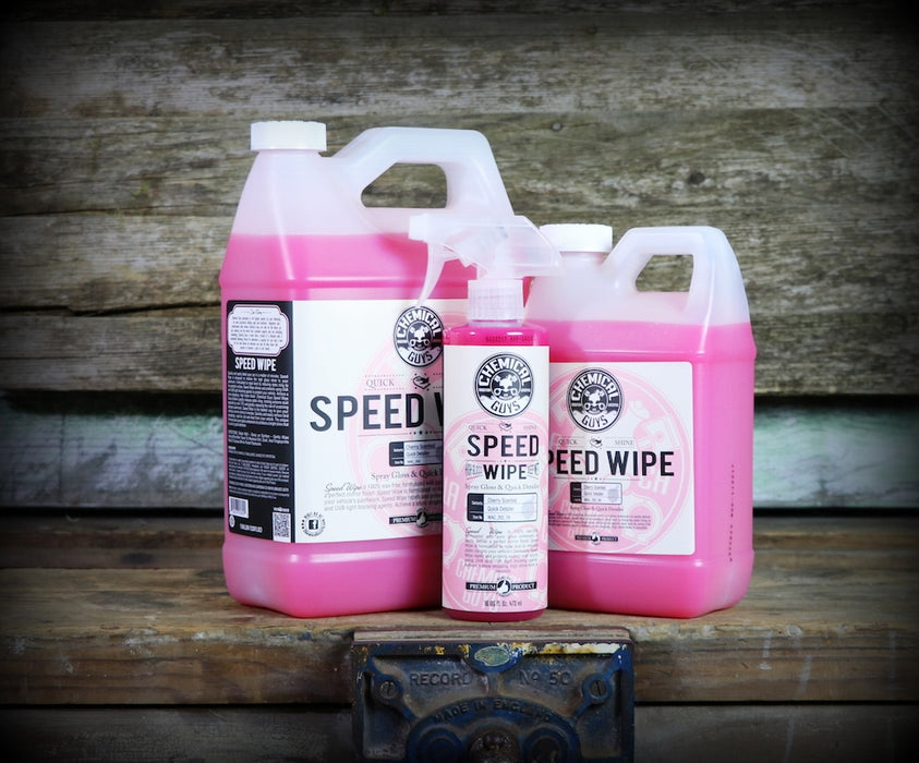 One of our favourite Quick detailers, Speed Wipe is a gloss enhancing detailing spray which enhances existing wax or sealant layer with a synthetic layer of protection. This is a Chemical Guys first, a quick detailer with true Anti Static properties. Chemical Guys Speed Wipe can be used on paintwork, glass, chrome, plastics and rubber to restore that just waxed look in minutes. It does not strip wax or remove sealants so is an ideal product for maintaining and prolonging waxed finishes. An easy to use, spray on then wipe off, quick detailer.