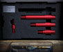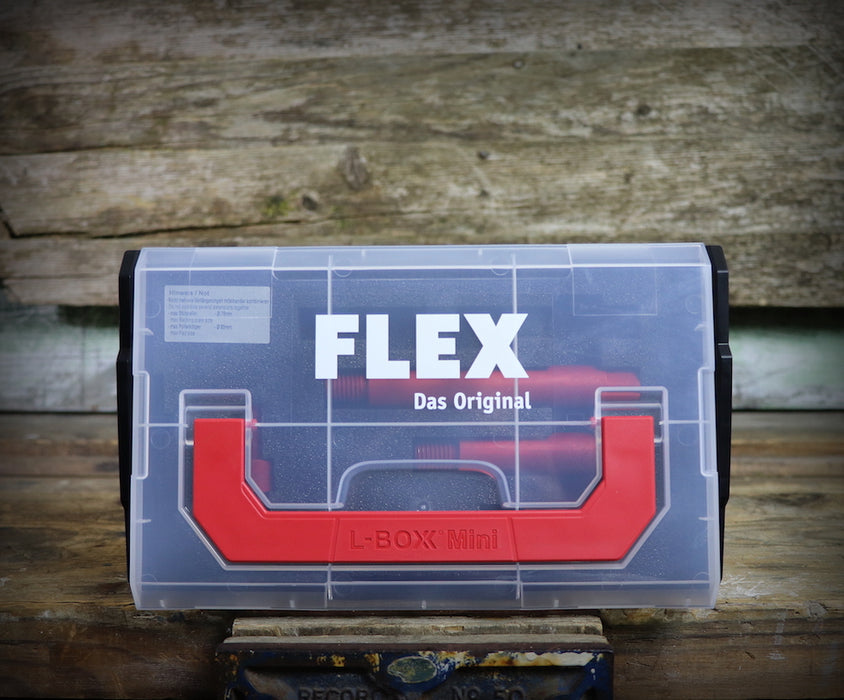 These Flex Extensions will help make your rotary polisher compatible in narrow and difficult to reach areas such as exterior mirrors, spoilers, bumpers, etc. This kit includes three M14 anodized aluminium extensions in 50mm, 80mm, 120mm and one M14 adapter for cordless screwdrivers. Neatly stored in a practical Flex Mini L-BOXX with foam insert including a separate compartment for a swirl finder pen (not included).