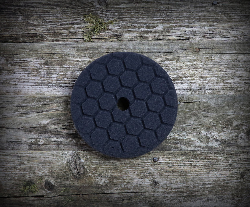 Flexipads Black Pro-Detail Finishing Pad (5.5") is a hexagonal-shaped finishing pad designed to both retain compound and achieve an exceptionally even finish. Suitable for use with a 125mm / 5" backing plate for both Rotary or Dual Action Polishers. Featuring a recessed velour, it allows the foam to be evenly distributed around the pad for an even cut, and to protect from scratching your work surface. Velcro backed for easier application, this pad has been developed using the finest foam and most innovative pad construction for superior results. Made in Great Britain.