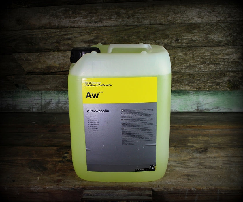 The Koch-Chemie 11kg Aktivwäsche Aw Active Shampoo is a concentrated solution, free of NTA and phosphates. It can be used for gantry washing systems, wash systems and when washing by hand. Anionic surfactants are used in conjunction with non-ionic surfactants to preserve the paintwork of your vehicle whilst meticulously cleaning it.