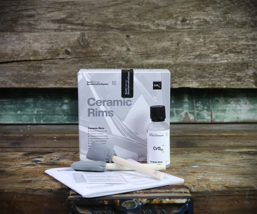 Koch-Chemie's Ceramic Rims is a ceramic coating designed to provide painted rims with long-lasting protection. A chemical reaction is created to form a permanently bonded protective layer on the surface, which in turn leaves a hydrophobic finish with excellent beading behaviour.