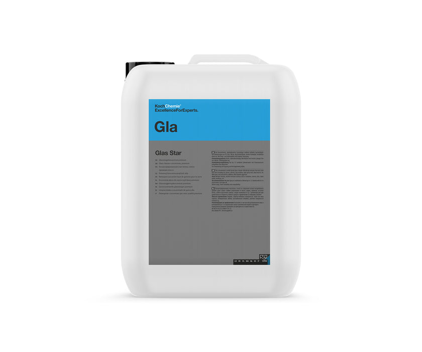Koch-Chemie Glas Star is a premium glass cleaner concentrate to leave streak-free, crystal clear glass. The alcohol-based formula effortlessly removes the most stubborn dirt including oil, grease, silicone, wax residues, light spray mist, insects and similar. Suitable for all smooth, alcohol-resistant surfaces on vehicles, buildings, etc. The alcohol content means that cleaning cloths dry faster. Also ideal for use in winter. With Daimler approval.