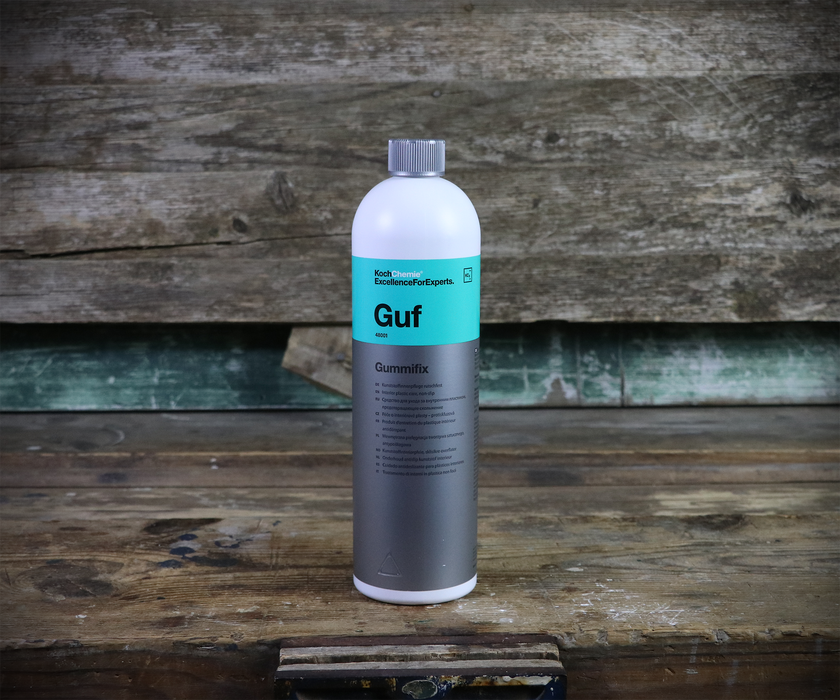 Koch-Chemie Gummifix is a non-slip interior plastic care product that restores a 'like-new' look to interior surfaces. Designed for use on rubber foot mats, plastic floor surfaces, and other interior areas in vehicles where slip resistance is necessary. Non-greasy, silicone-oil-free rubber and plastic care.
