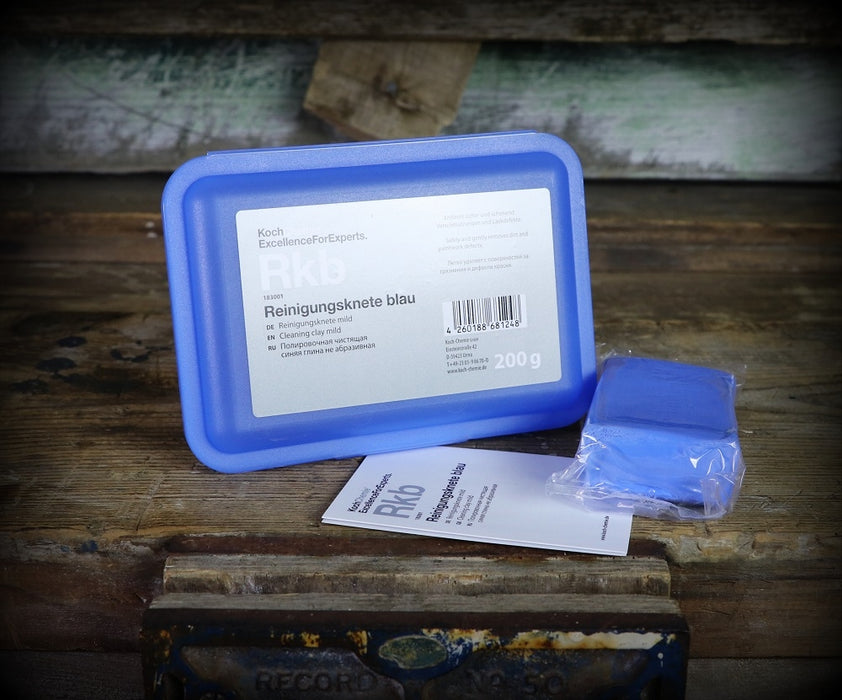 Koch-Chemie Reinigungsknete blau is a mild cleaning clay designed to remove even the most stubborn deposits. Works on tree resin and insects, rust bloom, industrial dust, spray mist, tar, limescale stains, etc.