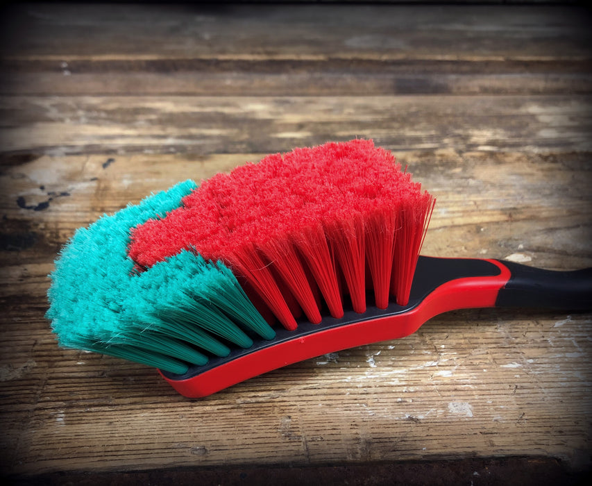This Koch-Chemie Small Rim Brush is a long life Vikan small rim brush. The bristles are acid resistant and ideal for brushing surfaces of alloys during wheel cleaning. The smaller head design allows access into small spaces and the soft red rubber is designed to prevent marking when working in tight areas. Acid resistant and bristles are split at the tips to offer super soft impact at point of contact. Vikan brushes are made in Denmark and are of excellent quality.