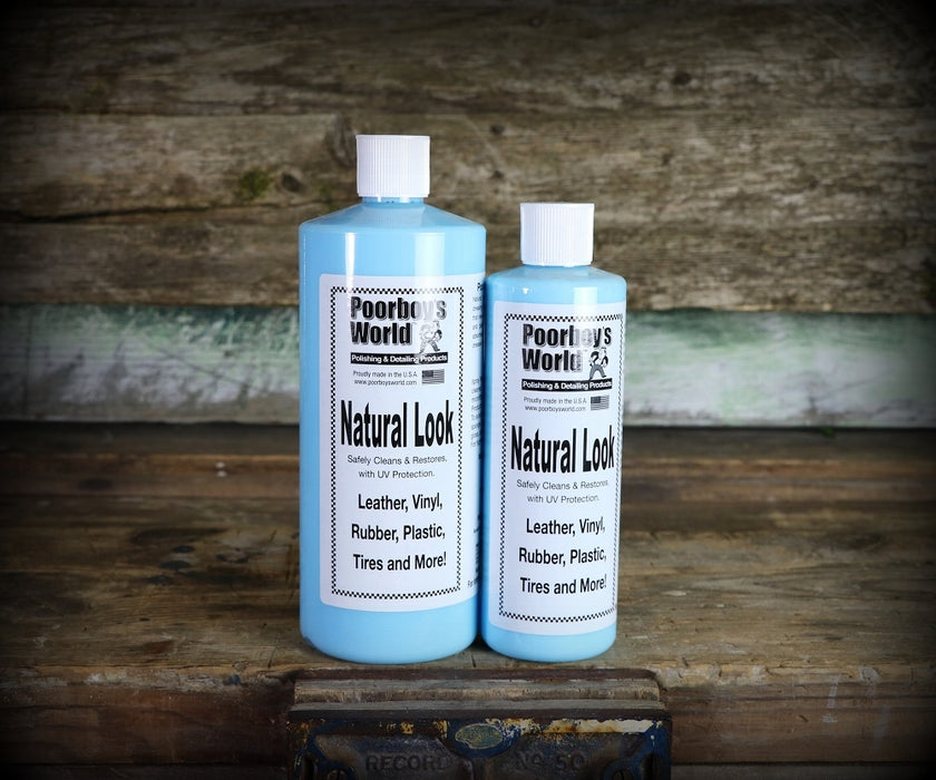 Natural Look is a water based interior dressing and cleaner, with a patented UV absorber for protection, and leaves that "new look" on vinyl and leather. It leaves a beautiful matte finish with a non-sticky, non-greasy feel to the touch. The water-based dressing dries to the touch providing superior UV protection and is safe for leather seats, vinyl interiors, tyres, and plastics. Softens as it protects, removing dust & light grime.
