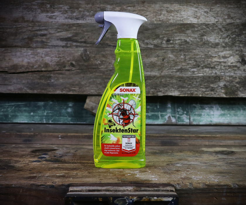 Insect Star effectively, quickly and gently removes even the most stubborn and dried insect residue from glass, paintwork, chrome and plastics without attacking the surface. Residues are eliminated thoroughly and easily. Ideal for use before every car wash.