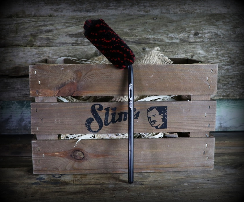 The Red & Black Caliper Spoke Woolie combines an ultra-soft carpet fibre head on a 45° degree, non-scratch, polypropylene handle. This Wheel Woolie is a 100% metal free design. They come in two size lengths of 12ʺ or 18ʺ. This product is very similar to the classic Wheel Woolie design except with an angle handle.